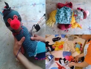 Atelier art-plastique, 6-8 ans, créations de doudous en textile.